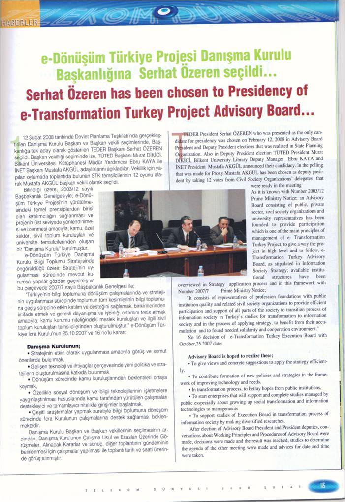 E-dönüşüm Türkiye Projesi Danışma Kurulu Başkanlığı'na Serhat Özeren Seçildi.